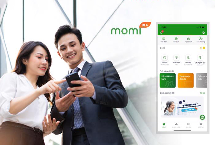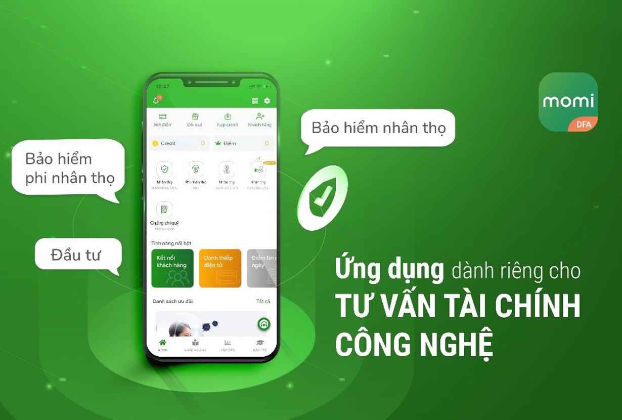 Momi DFA là ứng dụng ưu việt giúp các đại lý và tư vấn tài chính công nghệ phân phối các sản phẩm tài chính, bảo hiểm đến người dùng. Momi DFA là sự lựa chọn phù hợp cho các tư vấn tài chính truyền thống đang gặp khó khăn, người lao động tự do, muốn chuyển đổi nghề nghiệp hoặc bất kỳ ai muốn tăng thêm thu nhập. Gia nhập đội ngũ tư vấn tài chính công nghệ (DFA - Digital Finance Advisor) để được đào tạo miễn phí, tăng thu nhập lên tới vài chục triệu mỗi tháng và không giới hạn.
